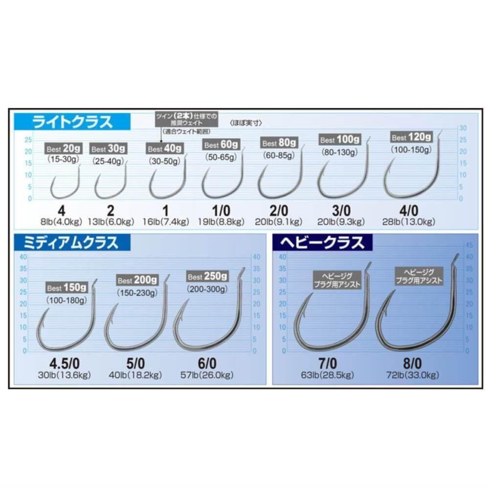小型青物から大型のヒラマサ・カンパチまで。ジグ30gから300gまでこれひとつで完結する青物専用ジギングフックです。