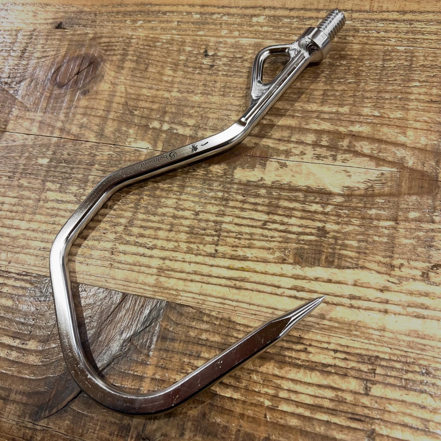 素材は高強度でサビにも強いステンレス(クローム18%-ニッケル8%)製となっており、掛けた大型魚をランディングし易く、逃がしにくいギャフ形状となっております。
